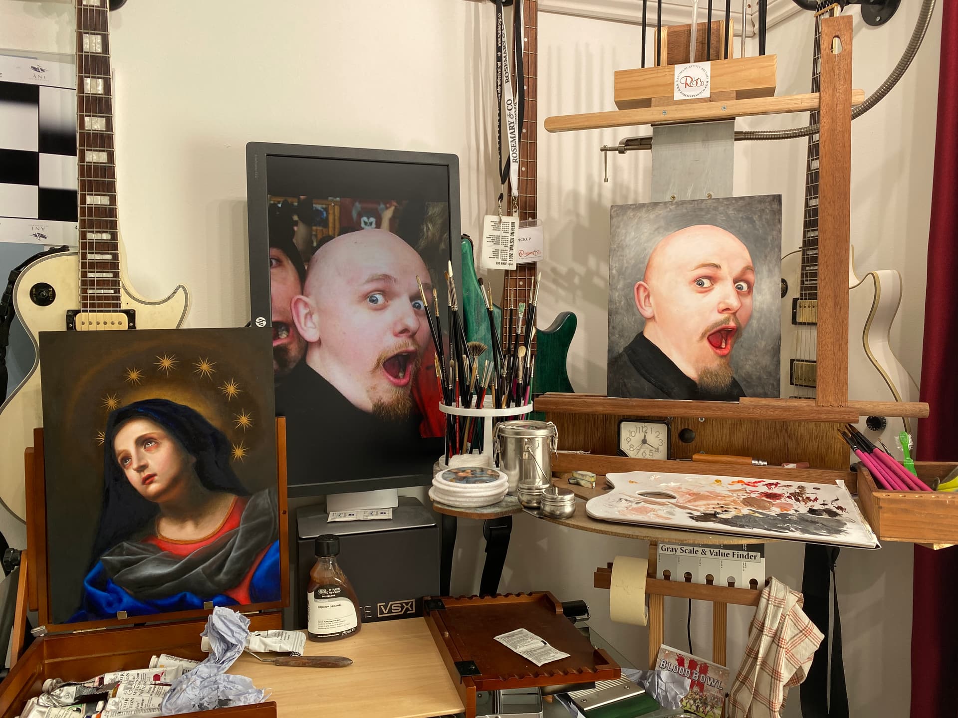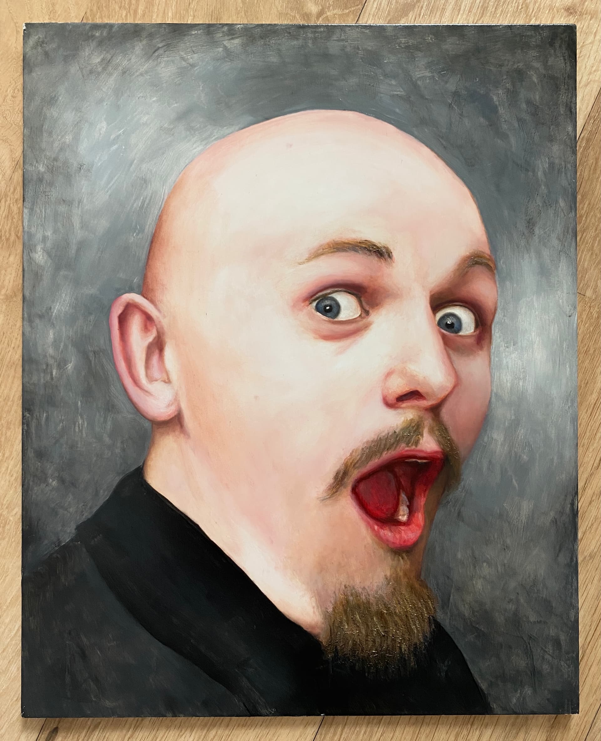 I knew I had limited time so was not going to over refine or get too photorealistic with it. My plan was not to adhere to any particular method or technique and just wing it, which seems to work for me generally. I’ve done the monochrome grisaille thing, and the raw umber underpainting, and the impressionistic Van Gogh thing, and they all have their merits so I thought I’d take a bit from them all and just have fun (after all I did not even have to give it to the guy if it went badly).