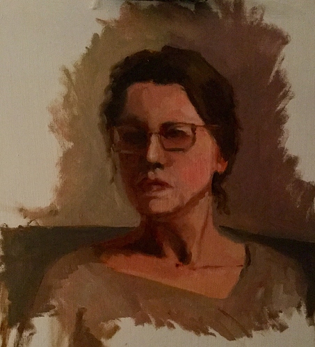 My wife was willing to sit about an hour and a half for me to paint her. I feel I have some big steps to make looking at the works of others on this website.