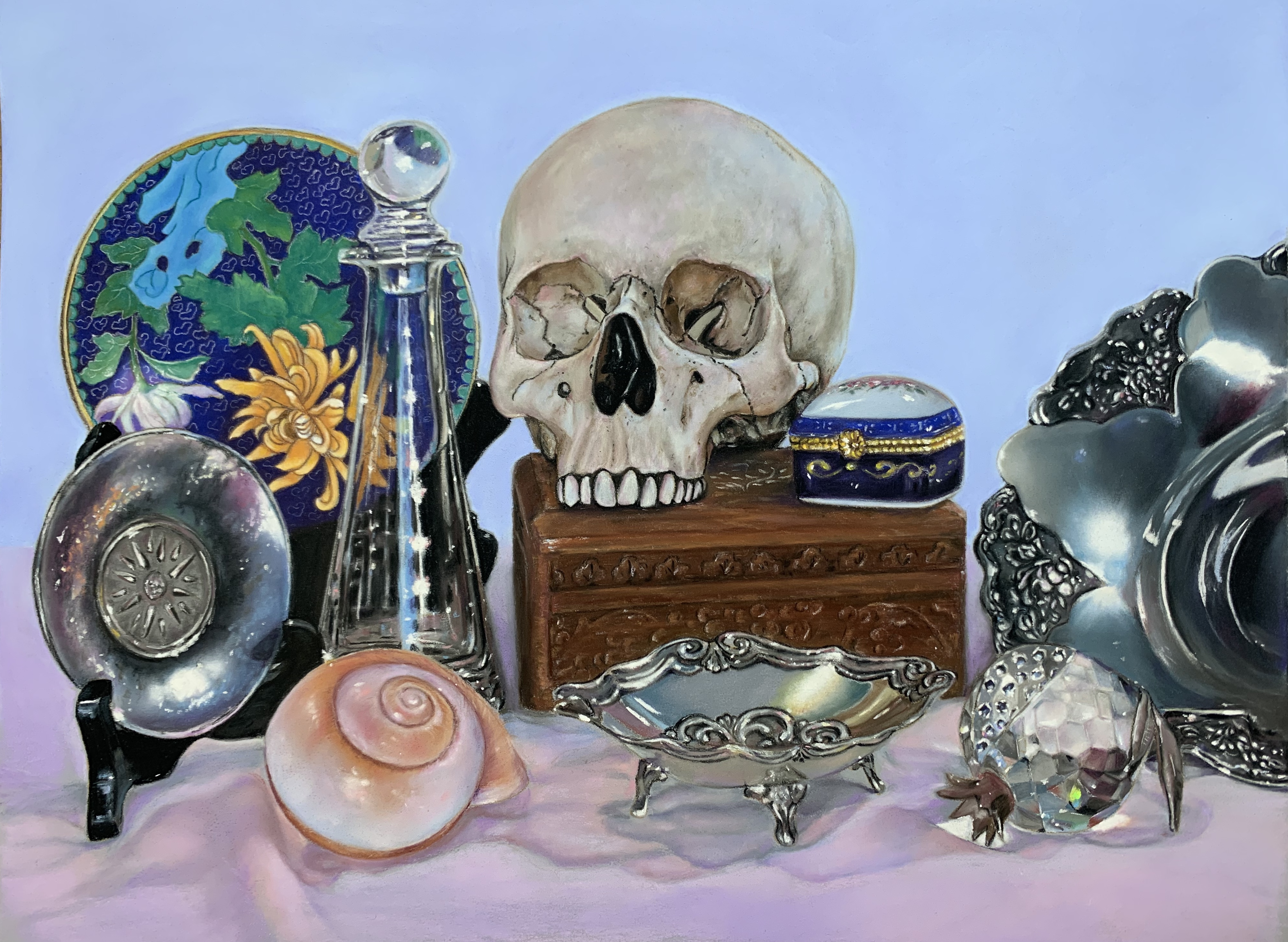 Super job, and what a lot of different textures and surfaces you’ve taken on. I like the light background, there are thousands of skulls all painted with a dark background in the tenebrist aesthetic, so this makes a nice change.